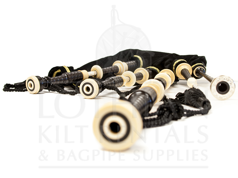 Special Edition Naill set - This David Naill DN3ES bagpipe is fully mounted with antique imitation ivory and new runic engraved sterling silver slides. The pipes come complete with Canmore Zipper Bag, Ezeedrone Reeds, cords and tassels, bag cover and blackwood bagpipe chanter. The pipes are fully tested and tuned for optimum performance before leaving our store.