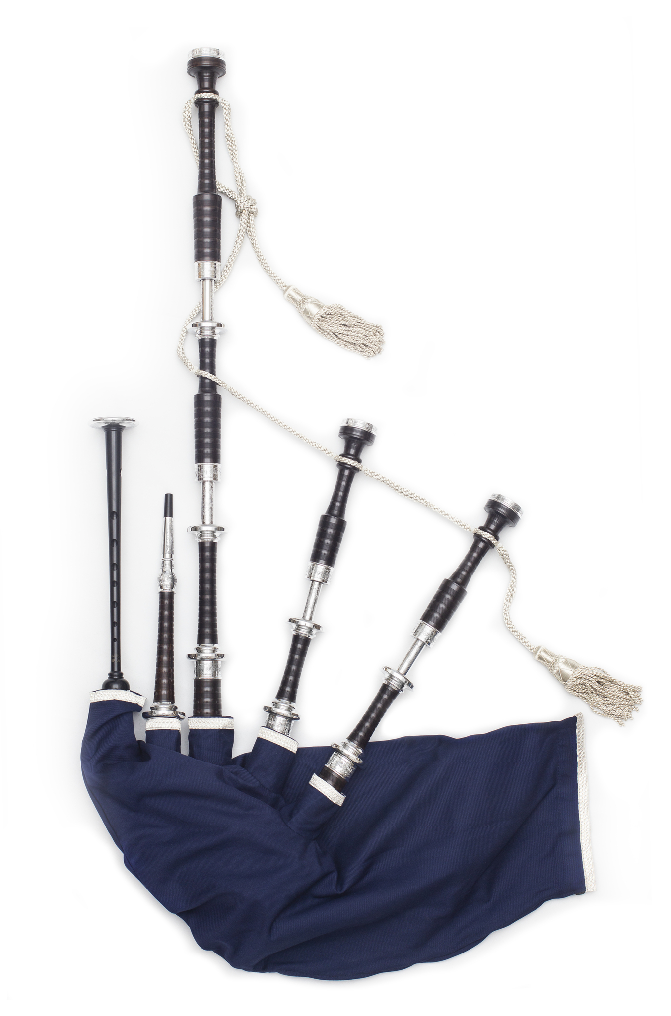 This MacRae reproduction bagpipe is made from African Blackwood and features MacRae engraved alloy projection mounts, beaded engraved alloy ferrules, engraved ring caps, engraved slides, imitation ivory bushes and engraved alloy mouthpiece. THISTLE PATTERN CURRENTLY IN STOCK FOR IMMEDIATE DELIVERY.