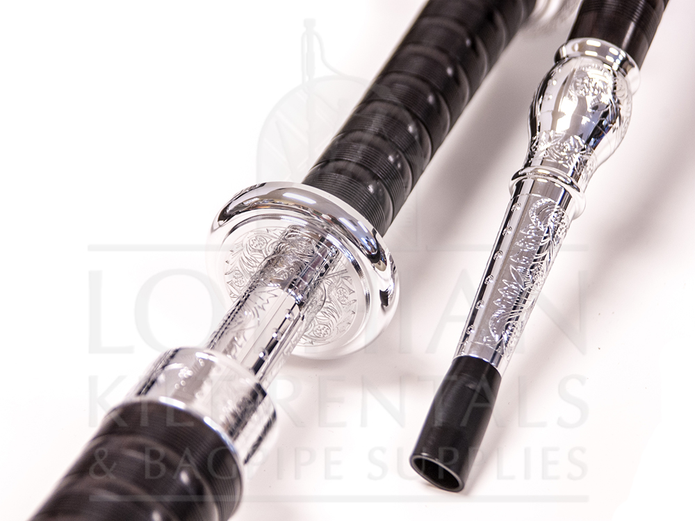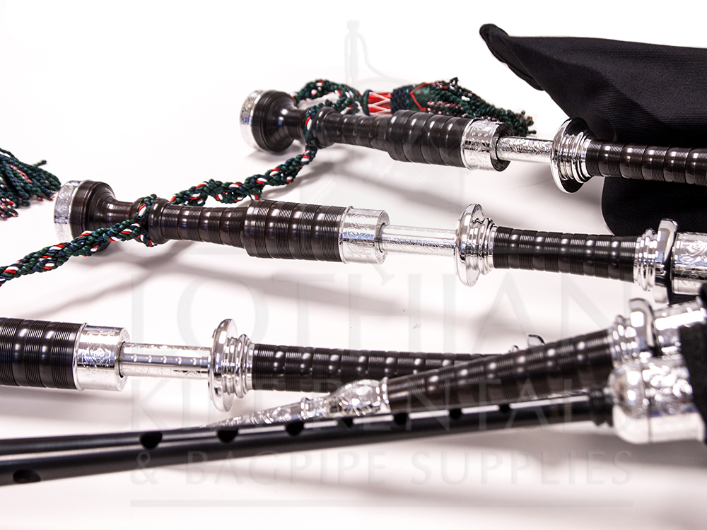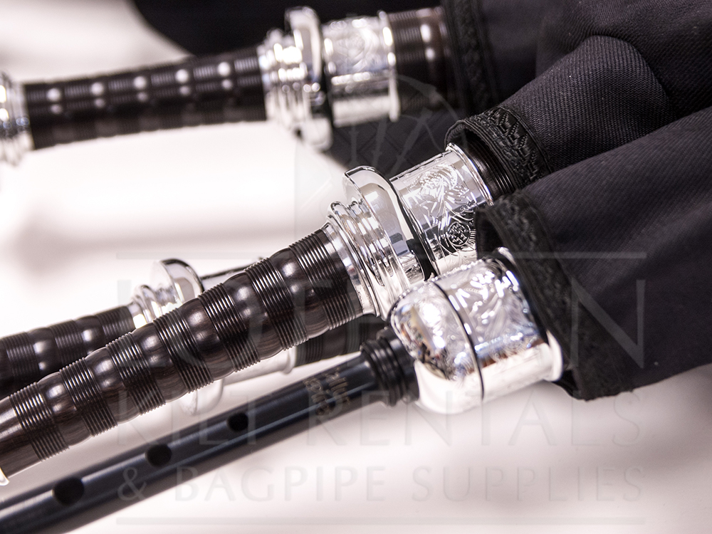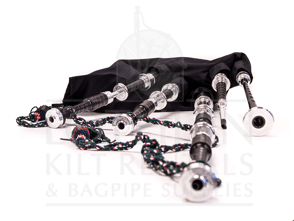 This set of McCallum bagpipes has full alloy mounts, ferrules, slides and ring caps. Bagpipes come complete with Canmore Zipper Bag, Ezeedrone Reeds, cords and tassels, bag cover and bagpipe chanter (pictured here with an oval mouthpiece). Pipes are fully tested and tuned for optimum performance before leaving our store.