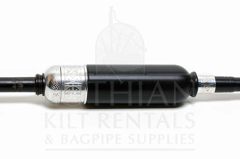The McCallum presentation practice chanter offers the appearance of vintage sterling silver model for the third of the cost. A plastic top and AFRICAN BLACKWOOD bottom section, mounted with engraved pattern will make any piper envious. Complete with counter sunk holes and a traditional hemp connection.